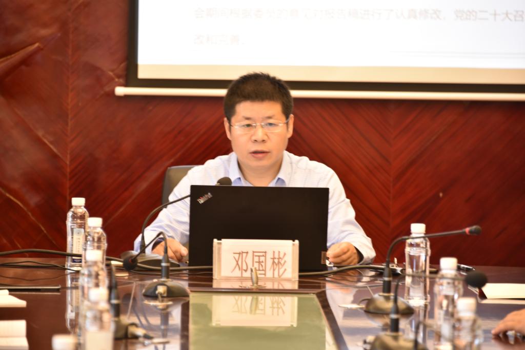 宣讲报告中,邓国彬从党的二十大主题与主要成果、过去5年的工作和新时代10年的伟大变革、马克思主义中国化时代化、中国式现代化、全面建设社会主义现代化国家的目标任务、坚持党的全面领导和从严治党、应对风险挑战、发展与安全出发,为师生党员生动介绍并阐述了党的二十大情况、会议内容、会议精神。邓国彬指出:无论国际形势如何变化、风险挑战如何严峻,最根本的是把我们自己的事情做好。同志们必须牢记,坚持党的全面领导是坚持和发展中国特色社会主义的必由之路,中国特色社会主义是实现中华民族伟大复兴的必由之路,团结奋斗是中国人民创造历史伟业的必由之路,贯彻新发展理念是新时代我国发展壮大的必由之路,全面从严治党是党永葆生机活力、走好新的赶考之路的必由之路。这是我们在长期实践中得出的至关紧要的规律性认识,必须倍加珍惜、始终坚持,咬定青山不放松,引领和保障中国特色社会主义巍巍巨轮乘风破浪、行稳致远。邓国彬要求:全体同志要认真学习领会党的二十大精神,紧密团结在以习近平同志为核心的党中央周围,高举中国特色社会主义伟大旗帜,全面贯彻习近平新时代中国特色社会主义思想,牢记空谈误国、实干兴邦,坚定信心、同心同德,埋头苦干、奋勇前进,为全面建设社会主义现代化国家、全面推进中华民族伟大复兴而团结奋斗!