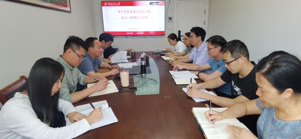 5月12日,资产管理处党支部在屏风校区后勤楼301会议室举行“共上一堂保密纪律课”主题党日活动。活动由党支部书记主持,全体党员同志参加。