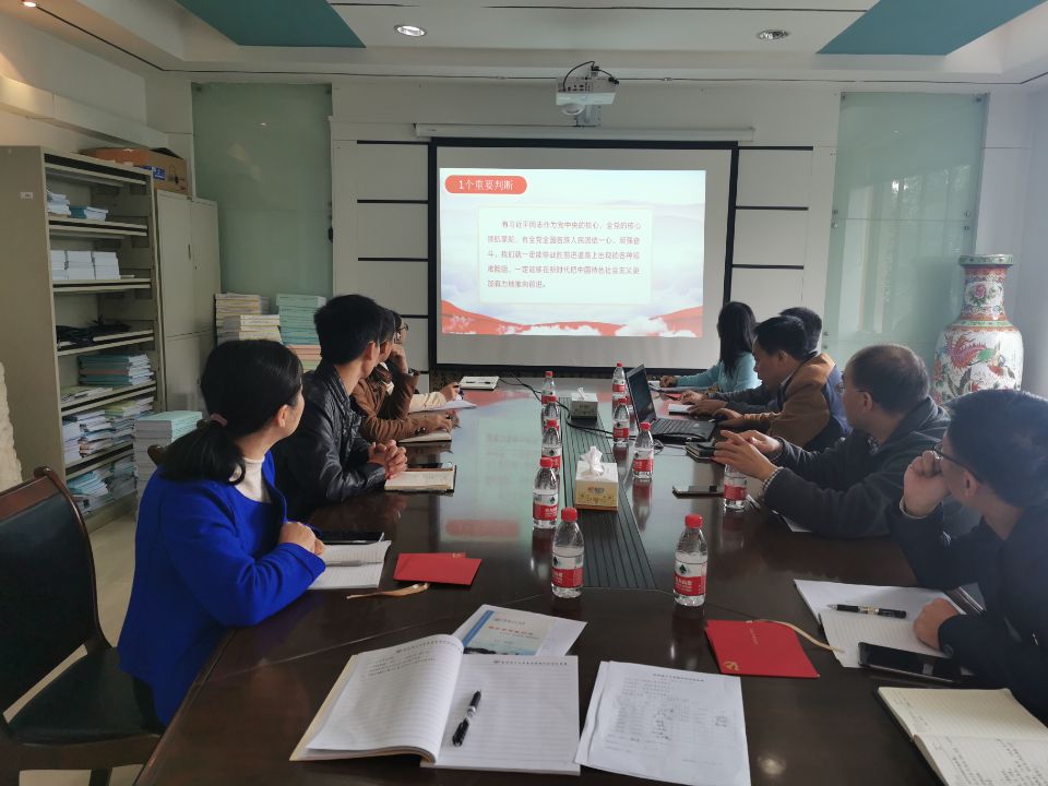 会上,支部书记伍飞军带领大家共同学习了《中国共产党第十九届中央委员会第五次全体会议公报》。会议指出,党的十九届五中全会是一次具有里程碑意义的重要会议,充分体现了以习近平同志为核心的党中央谋划未来的远见卓识和继往开来的历史担当。全会审议通过了“十四五”规划和2035年远景目标建议,深刻指明了“十四五”时期我国经济社会发展的指导方针、目标任务和战略举措,对“十四五”时期我国经济社会发展各项工作做出了全面部署,为全面建设社会主义现代化国家提供了行动指南。