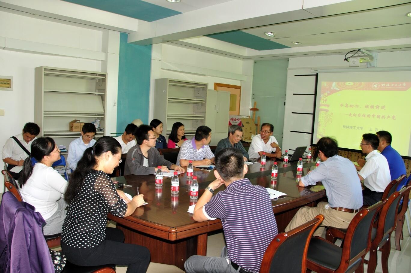 为进一步深化“两学一做”学习教育,使广大党员学得更透彻、做得更有实效,10月14日下午,纪监审支部、资产支部、招就支部等三个党支部联合开展“两学一做”学习教育,邀请学校马克思主义学院党委书记王青山教授就习近平总书记“七一”重要讲话作了辅导报告。纪监审支部、资产支部、招就支部全体党员参加学习。