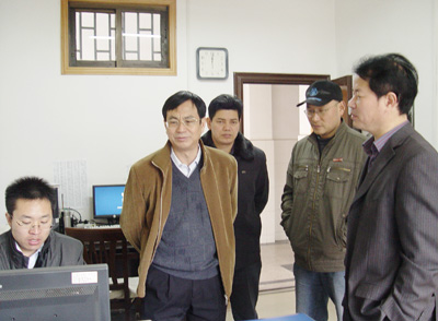 赵艳林书记(左二)到资产管理处检查指导工作